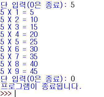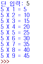 ▶ elif dan > 9 or dan < 1 : elif not(1<=dan<=9)로도 표현 가능