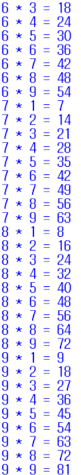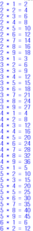print("%s X %s = %s"%(m, (i+1), (i+1)*m))