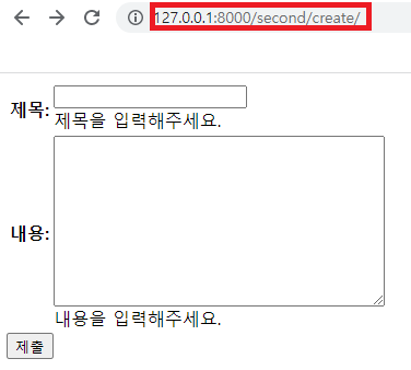 → title 필드와 content 필드 각각에 '제목'과 '내용' 라벨 선언