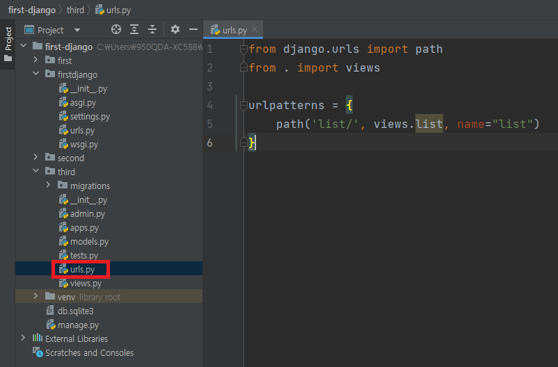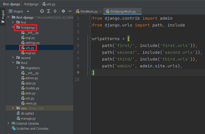 ▶ url이 충돌하지 않도록 firstdjango/urls.py를 수정