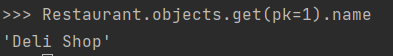 ▶ Restaurant.objects.get(pk=1).name