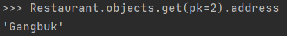 ▶ Restaurant(name="Korean Food", address="Gangbuk").save()