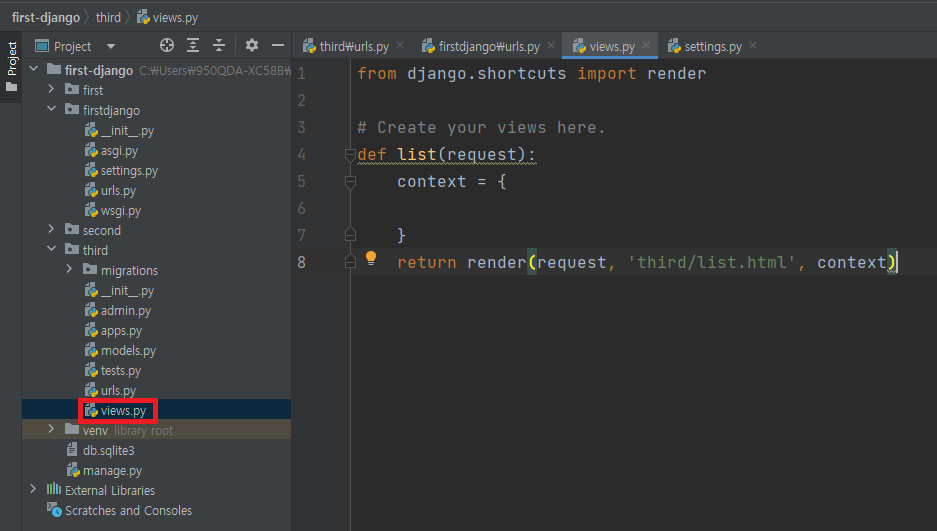 ▶ third/views.py에 list 메소드를 추가