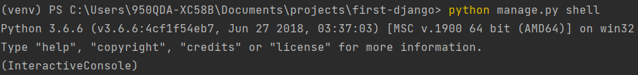 ▶ python manage.py shell : manage.py를 쉘로 실행