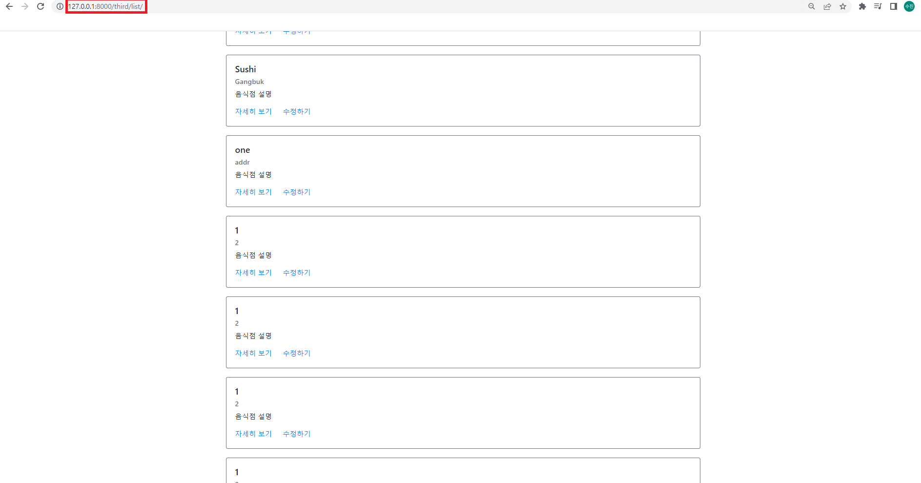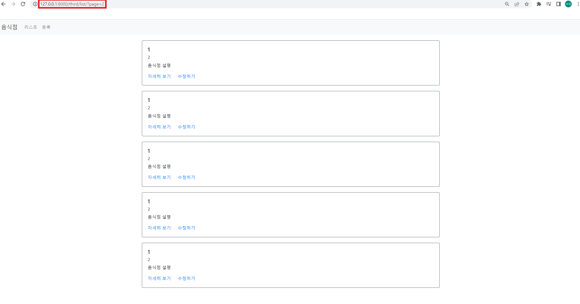 ▶ /third/list/?page=2 : 두 번째 페이지에 접속