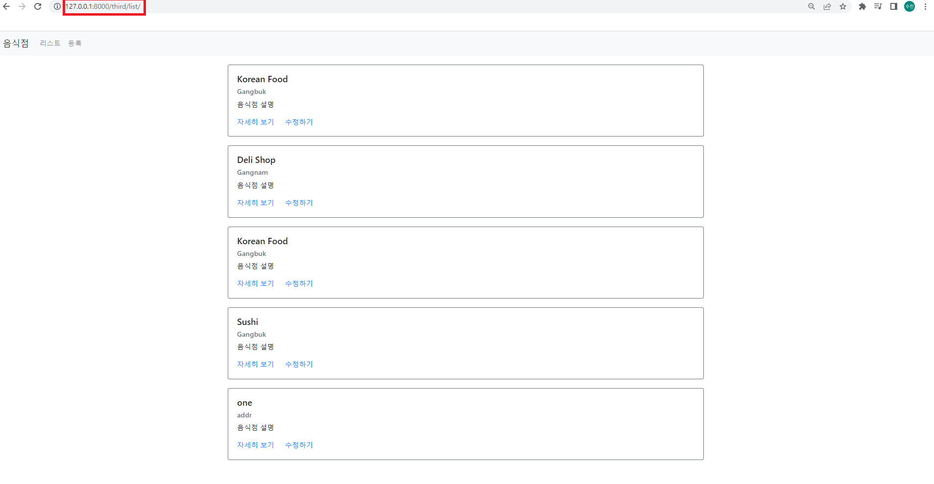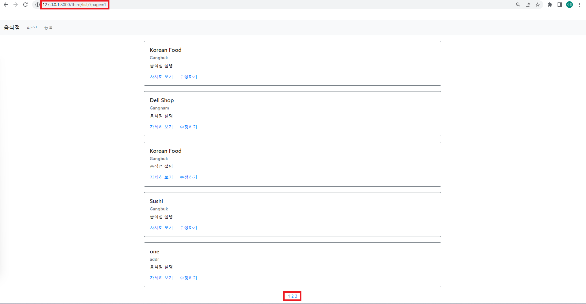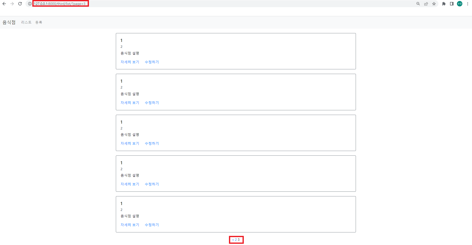 ▶ /third/list/?page=1 : 첫 번째 페이지에 접속