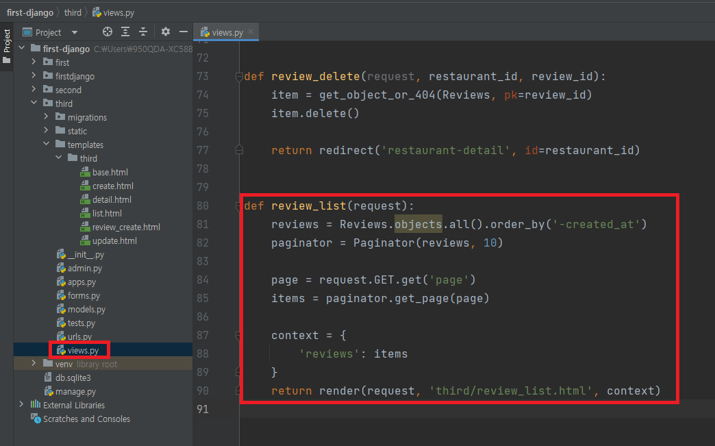 return render(request, 'third/detail.html', {'item': item, 'reviews': reviews})