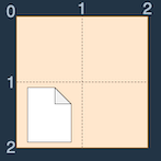 이를 드래그로 선택하기 위해서는 그 칸의 왼쪽 위 (1, 0)에서 오른쪽 아래 (2, 1)로 드래그 하면 됩니다. (1, 0)에서 (2, 2)로 드래그 해도 아이콘을 선택할 수 있지만 이전보다 이동거리가 늘어납니다. 따라서 [1, 0, 2, 1]을 return합니다.