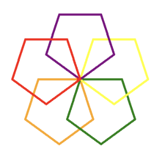 ▶️ 5각형 도형이 5개이며 72도씩 회전하여 그림을 그림