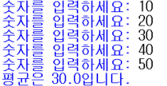 사용자로부터 5개의 숫자를 입력받아 리스트에 저장하고 숫자들의 평균을 계산하는 프로그램을 작성해보자.