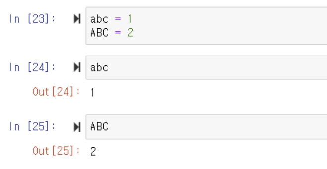 1. 영어 소문자, 대문자, 숫자 등으로 구성(단, 숫자로 시작 못함)