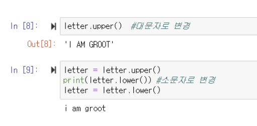▶️ letter 변수에는 'I am groot' 문자열이 입력되어 있음