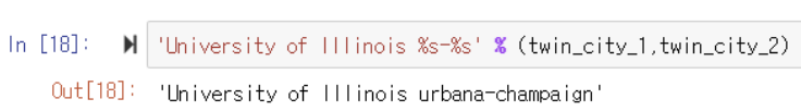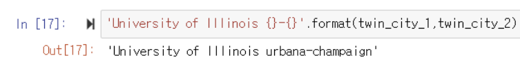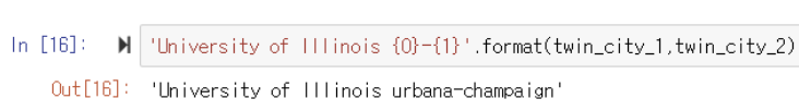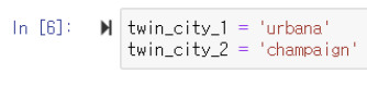▶️ twin_city_1, twin_city_2 변수를 생성해 urbana와 chanpaign 문자열을 미리 저장함