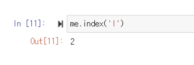 me 변수에 저장된 문자열에서 I의 위치를 출력해보자.