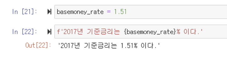 2017년 기준 금리는 1.51%이다.를 f-string format을 이용해 출력해보자.