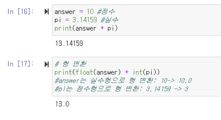 정수 → 실수, 실수 → 정수, 수치형 → 문자형 등