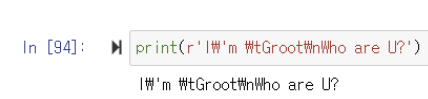 ▶️ r' '로 감싸줌으로써 문장 내에 사용한 이스케이프 문자까지 모두 출력함