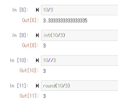 10 나누기 3의 결과를 내림해보자.