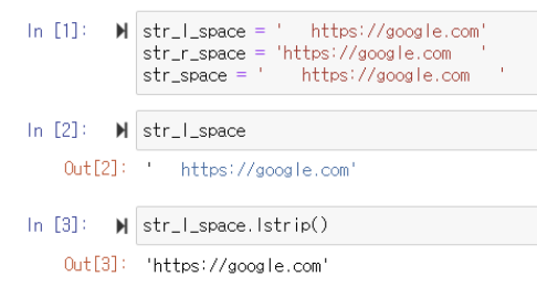 ▶️ str_l_space.lstrip() : str_l_space 변수에 저장되어 있는 문자열의 왼쪽 공백을 제거