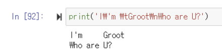 ▶️ 위 상황에 더해 \t을 통해 탭 역할을 함