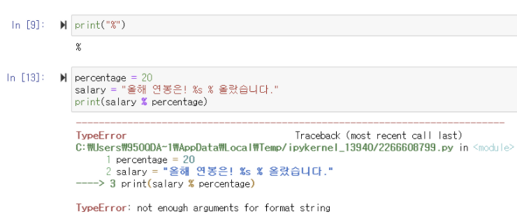 → 단독으로 있을 때는 괜찮지만, 아래 셀에서는 앞에 %s에 해당하는 변수가 존재함
