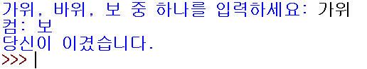 user = input('가위, 바위, 보 입력 ')