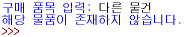 print("해당 물품이 존재하지 않습니다.")