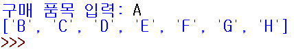 u_items = input("구매 품목 입력: ")
