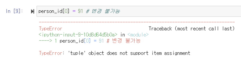 ▶️ 리스트처럼 변수[인덱스] = 변경할 값으로 입력하면 오류가 발생함