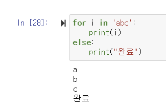 ▶️ for와 쓰이는 else는 for문이 완벽하게 실행된 후에 else가 실행됨