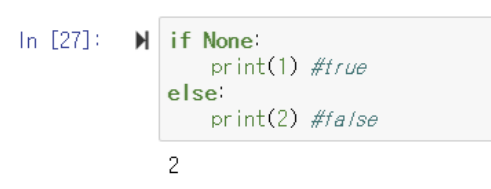 ▶️ 동일하게 None을 출력하면 False이기 때문에 2가 출력됨